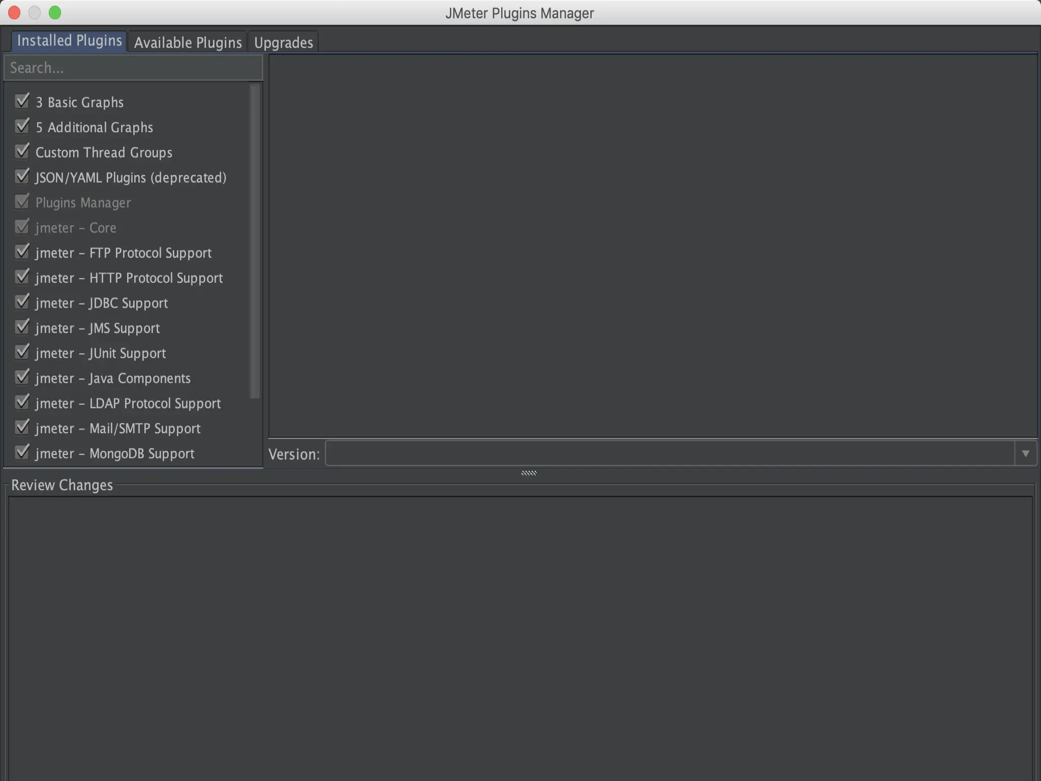 3、重启JMeter,在Options-->Plugins Manager中可以看到插件页面如下,展示已安装及可安装的插件。