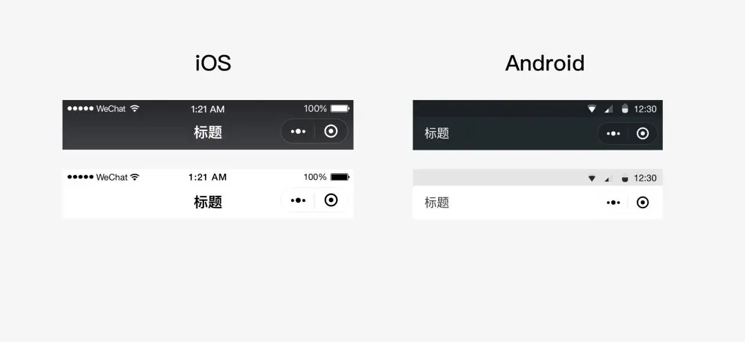 实现效果也略欠缺一些,例如微信提供原生和自定义的两种导航栏: