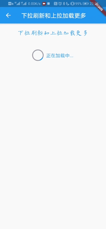 - 下拉刷新 和 上拉加载更多(初始化加载数据、结束时的标记、根据index判断底部是绘制结束的Widget还是正在加载时的Widget、Widget的正常显示)