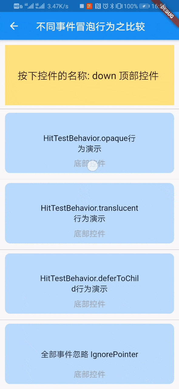 - 不同事件冒泡行为之比较(HitTestBehavior.deferToChild/HitTestBehavior.opaque/HitTestBehavior.translucent/IgnorePointer)