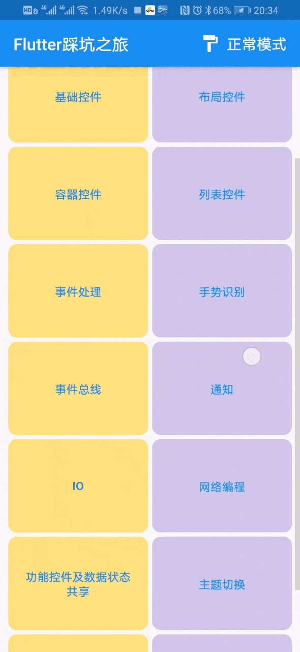 - 通用类导航主界面(Scaffold/AppBar/TabBar/TabBarView/Drawer/FloatingActionButton)