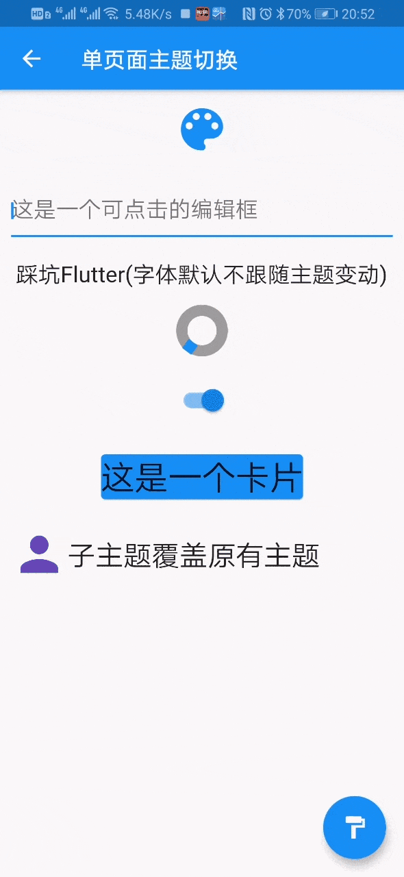 - 应用主题切换(Theme/ThemeData(内部通过InheritedWidget实现))