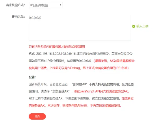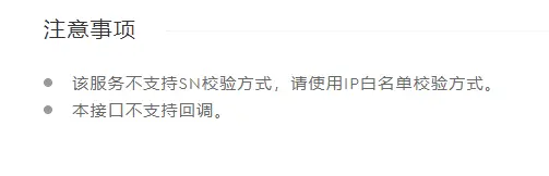 进入了以后,就可以看到这一项服务明确的要求了要使用IP白名单检验,这也就是为什么我们在创建应用的时候设置IP白名单检验。