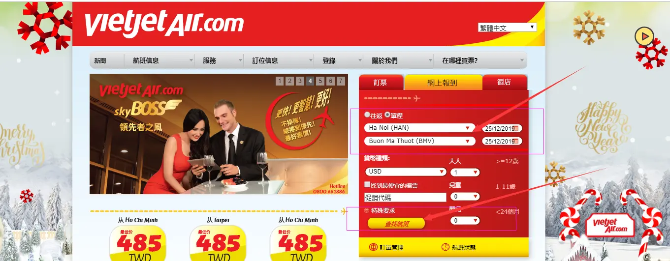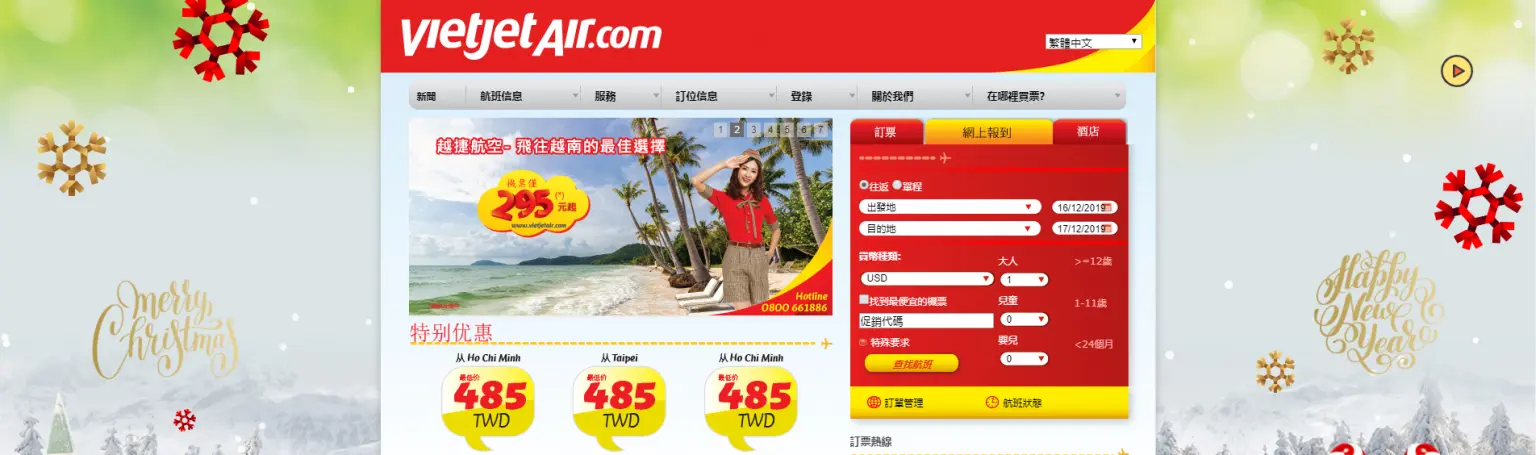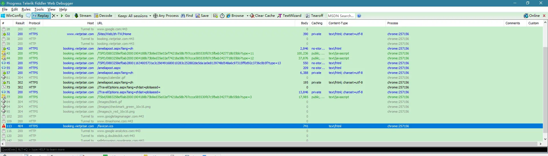 我们打开越捷航空的官网,并确定一下Fiddler是否正常能正常过滤出我们预设的域名。