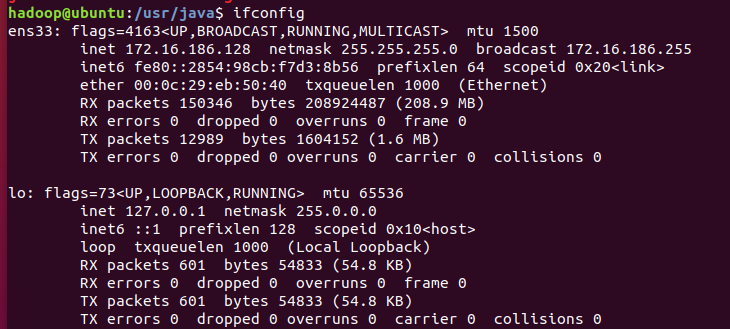 利用ifconfig查看ubuntu服务器的局域网IP地址