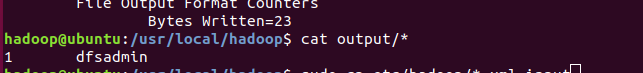 Hadoop目录下,会有input和output两个新建的文件,output中有上述程序 的运算结果,到此Hadoop单机安装配置成功。