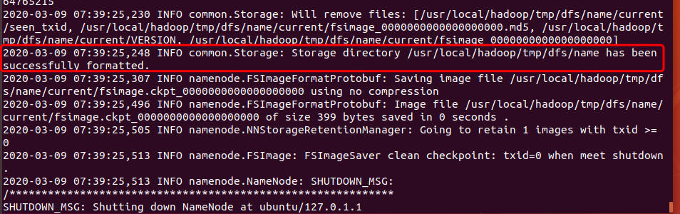 至此,配置完毕,但是还不能启动,要对hdfs先进行格式化。类似以前的软盘,使用前要先格式化,执行命令: