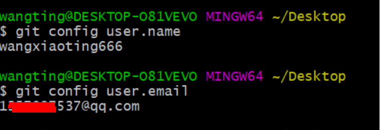 安装git工具这里就不多说了,安装完成之后,在桌面上git bash进入命令行,输入GitHub用户名和邮箱验证。