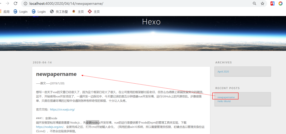 hexo基于node.js,本地需要安装node 和npm,安装步骤就不多说了