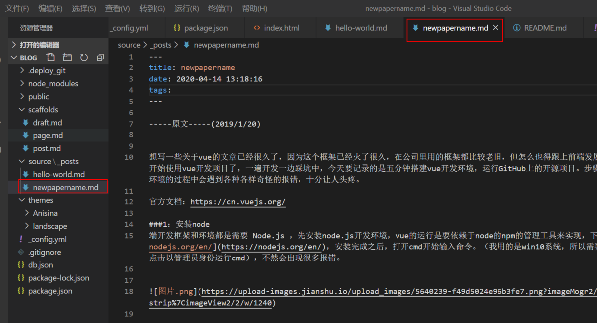 在source_posts里面生成了markdown文件夹,用来写文章了,记住要使用markdown格式书写文章博客。