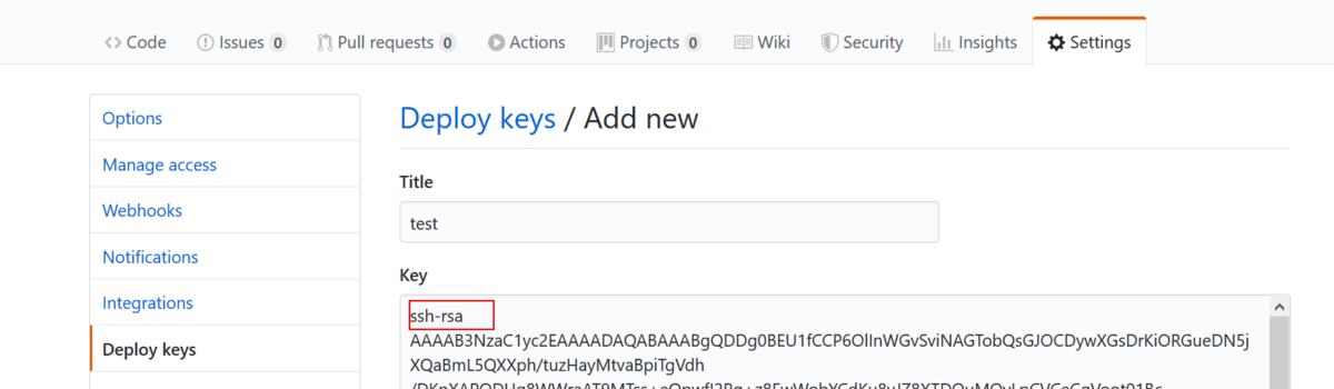 在GitHub的setting中,找到Deploy keys的设置选项,点击新建一个密钥,把id_rsa.pub里面的信息复制进去,id_rsa.pub打开方式可以使用浏览器打开。