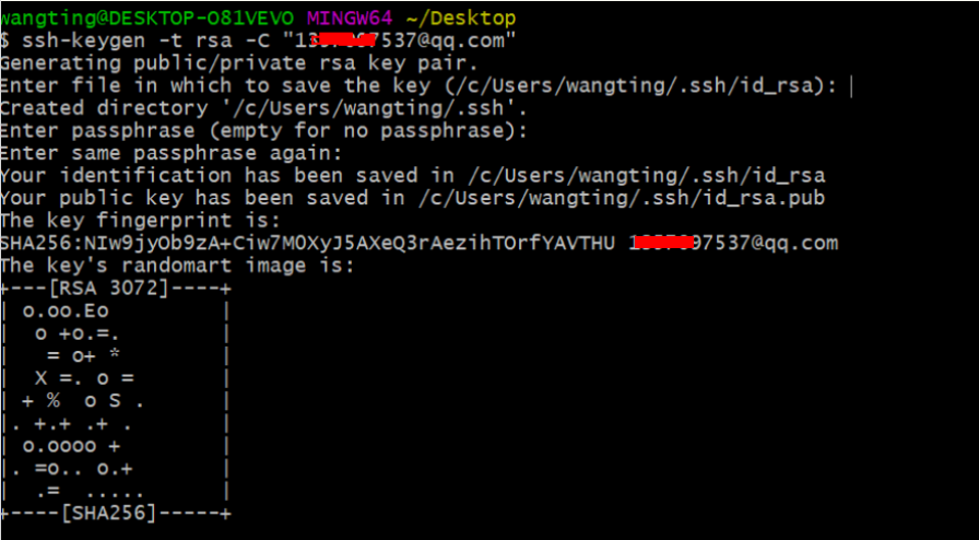 ssh-keygen -t rsa -C "xxxx7537@qq.com"(你的邮箱)