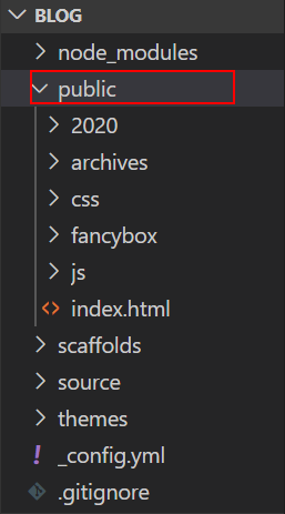 可以看到在目录里面生成了一个静态的文件,生成好的public文件夹就直接当成静态网站进行部署即可。