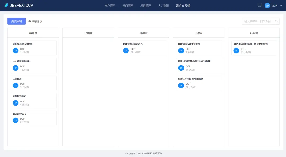 DEEPEXI® DCP(Digital Collaboration Platform)定位于企业级数字化协同平台,是DEEPEXI® D系列(商业智能)的热销产品之一。其以企业战略为基石,围绕核心目标进行自上而下的分解,基于前沿的微前端技术,(了解更多:滴普大前端|DevOps(A10)基于qiankun的微前端实践)拆解成部门管理、项目管理等丰富微场景,有效促进团队以全新方式规划工作目标和管理任务,确保计划实现,支持企业全面数字化转型。