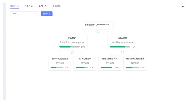 供团队领导者创建以季度为单位的短期目标,规划团队整体作战方向。