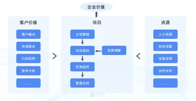 以客户价值为核心,统筹调度企业资源,组建项目运作单元,达成产品或服务目标,实现企业价值的提升。项目化运作,通过周密的规划排期来管理好项目中的人、事、物,达成项目目标。