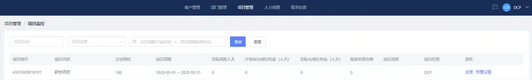 在项目管理中,DCP提供一站式项目管理流程服务,从立项—规划—监控—(变更)层层把控,以项目视角将所有相关流程中与项目管理相关的动作汇聚到项目各阶段中,形成了以项目为中心的集中管控视图,清晰地凸显了项目管理的价值。
