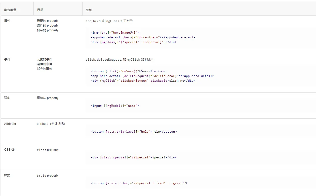 属性、元素操作以及指令普通数据图片展示模板引用变量NgForNgSwitch和NgIfNgClass和NgStyle管道安全导航运算符( `?` )和空属性路径绑定语法绑定类型与绑定目标事件普通点击事件表单事件双向数据绑定$event 和事件处理语句Form表单搜索TodoList(待办事项和已完成事项)