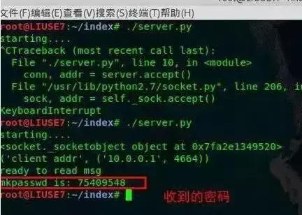 原理:client端会在你的小伙伴电脑上随机生成一个密码然后通过socket发给server端,也就是你。
