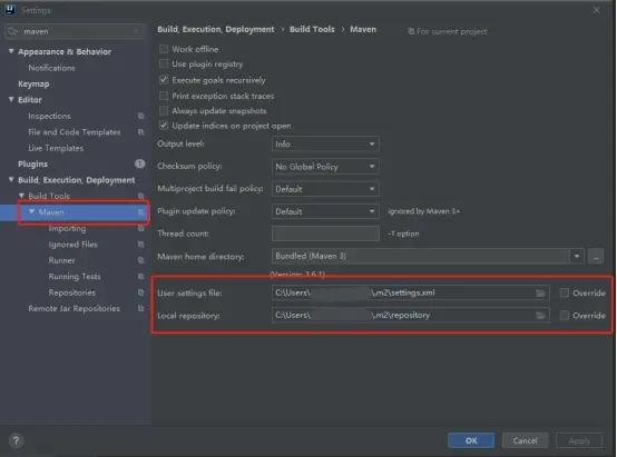 如图,上面是maven的配置文件所在路径,下面是maven仓库配置的地方,jar包等都放在该repository仓库下