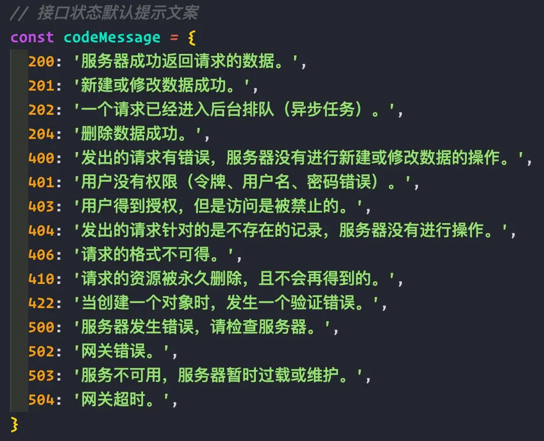 默认的接口状态码消息