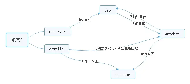 数据变化后,怎样更新到视图中呢?通过new watch(vm,key,cb)收集依赖,而Dep是订阅器,在get函数中添加订阅者。数据更新后,在set函数中,Dep遍历订阅者并更新函数。