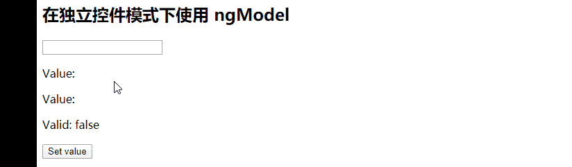 下面是一个在简单的独立控件中使用 ngModel 的例子: