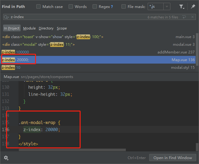 所以应该是Map.vue(其他)样式中z-index属性影响到了页面的样式,导致对话框的高堆叠顺序挡住了下拉选择框