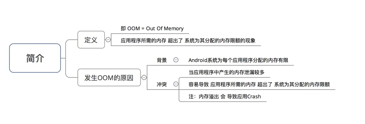 避免因不正确使用内存 & 缺乏管理,从而出现 内存泄露(ML)、内存溢出(OOM)、内存空间占用过大 等问题,最终导致应用程序崩溃(Crash)