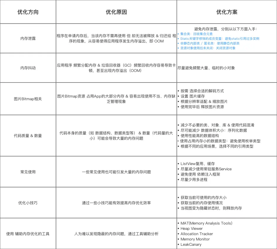本文主要讲解内存优化的相关知识,总结如下: