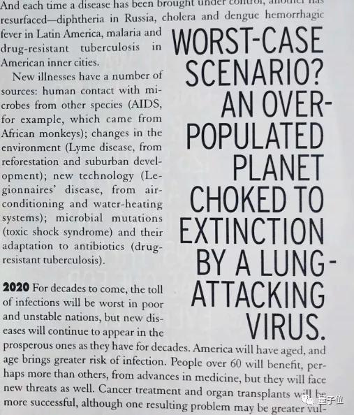 未来人类可能会遭受到肺部感染病毒的疾病,还写了一个确切的年份——2020年。