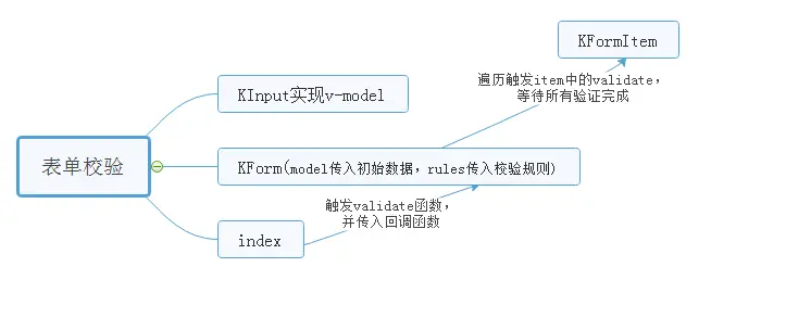 - KForm 遍历KFormItem实例中的validate,并触发执行,promise.all(tasks),等待所有task执行完毕后进行后续操作。