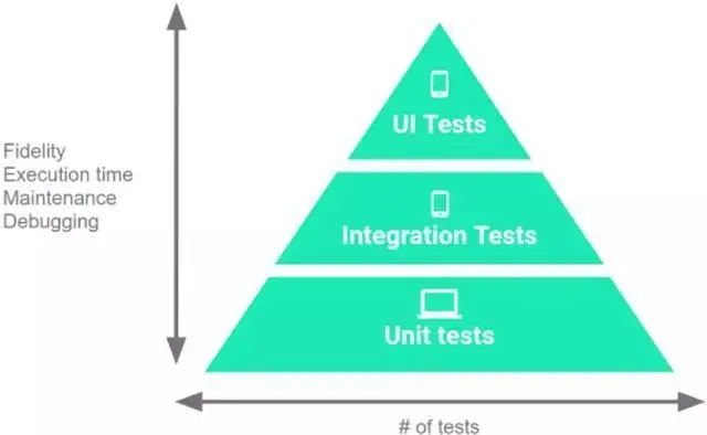 2)谷歌建议将测试的分布定为 70%的单元测试、20%的集成测试和 10%的大型测试,占比较小的部分需要更长的执行时间、维护时间和实施时间。