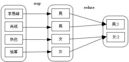 map 端的用户自定义函数与 map 算子对原始数据人名进行了转换,生成了组标签:性别,reduce 端的自定义函数与 reduce 算子对数据按照标签进行了聚合(汇总)。