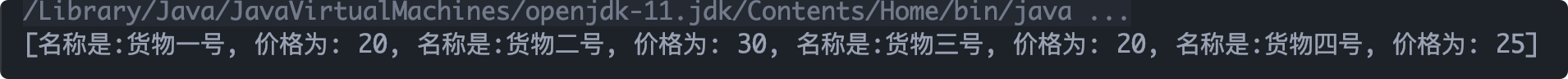 public static void main(String[] args) { List<Goods> goodsList1 = goodsList(); List<Goods> goodsList2 = goodsList(); List<List<Goods>> goodsAll = Lists.newArrayList(goodsList1, goodsList2); List<Goods> goodsList3 = goodsAll.stream() .flatMap(List::stream) .collect(Collectors.toList()); System.out.println(goodsList3); }运行结果: