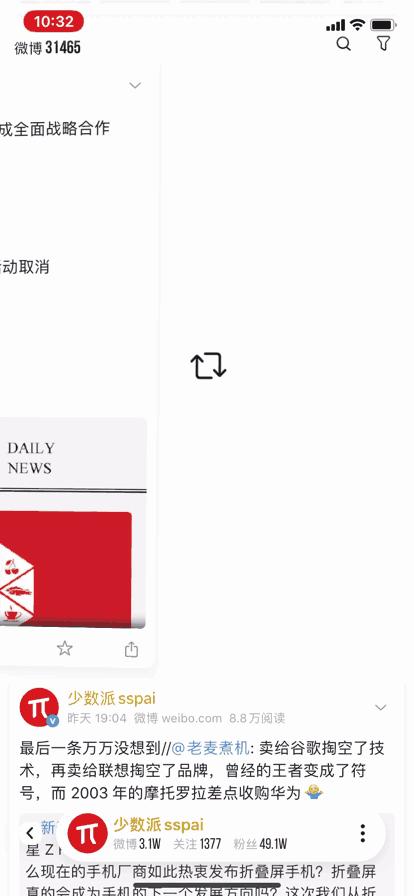 除了界面设计外,新版本也针对当前用户的操作习惯修改了交互逻辑。最显而易见的是 VVebo 新版本修改了滑动逻辑,在非边缘位置左右滑动变为切换列表和返回。