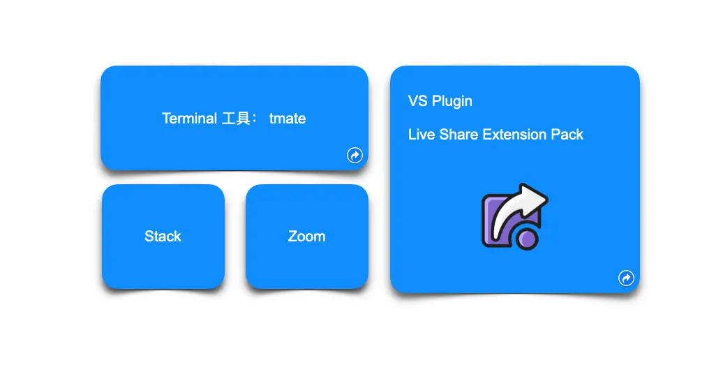 同时也开始通过 tmate(Terminal 工具)、Live Share Extension Pack(VS Code 的 Plugin )。