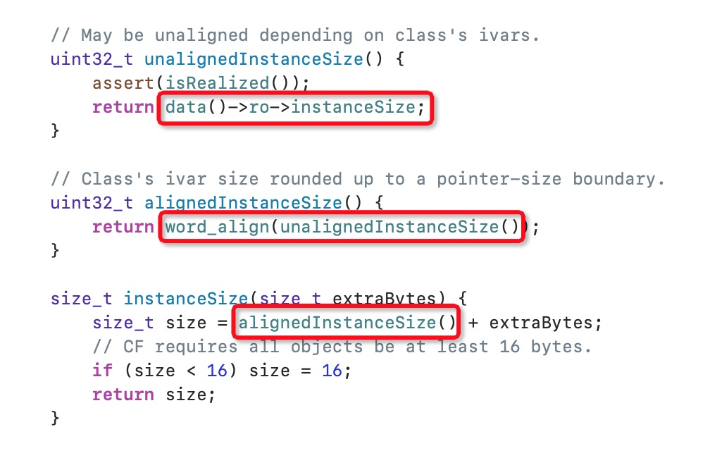 进入callAlloc()函数会执行到 __OBJC2__部分。因为canAllFast()返回值总为false,所以代码会走到判断中的else部分。重点就在于class_createInstance()函数。