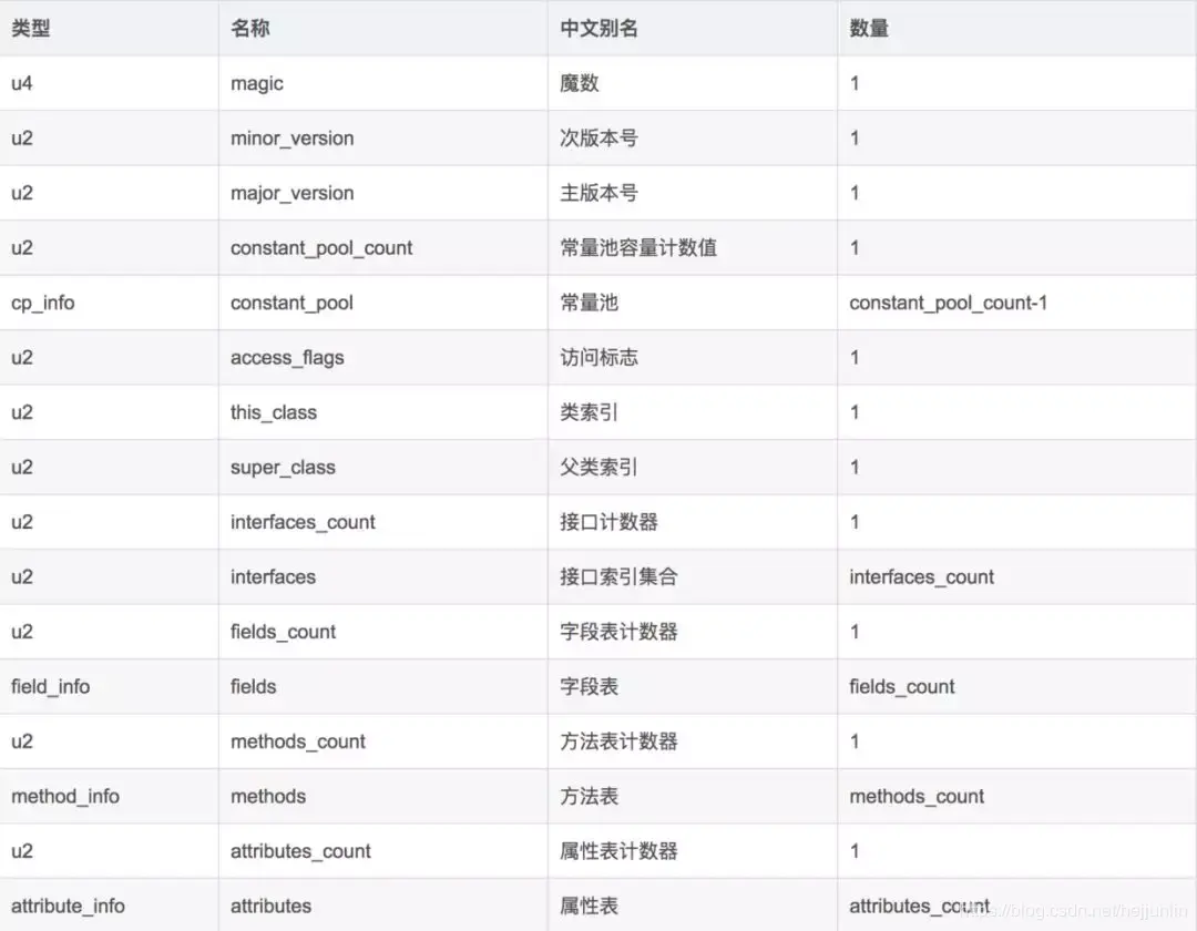 - 1、CONSTANT_Class_info 类和接口的全限定名(该名称在所有类型中唯一标识该类型)