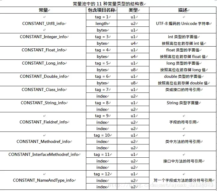 常量池中每一项常量都是一个表