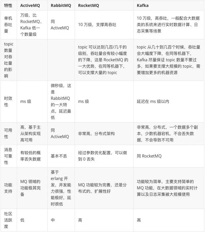 不过ActiveMQ和RabbitMQ这两着因为吞吐量还有GitHub的社区活跃度的原因,在各大互联网公司都已经基本上绝迹了,业务体量一般的公司会是有在用的,但是越来越多的公司更青睐RocketMQ这样的消息中间件了。