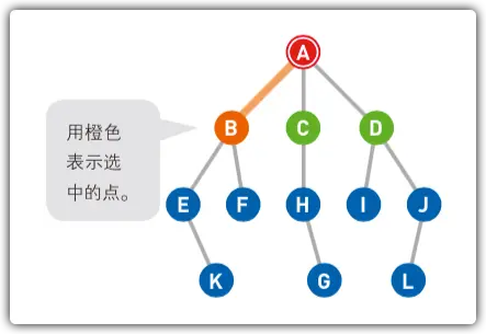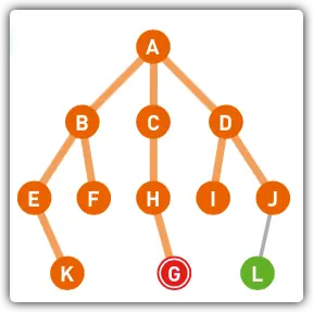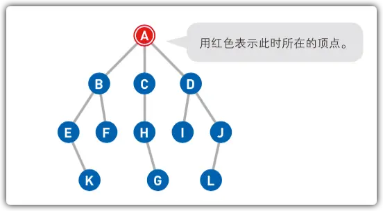 # 从顶点A到终点G,搜索顺序如下