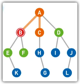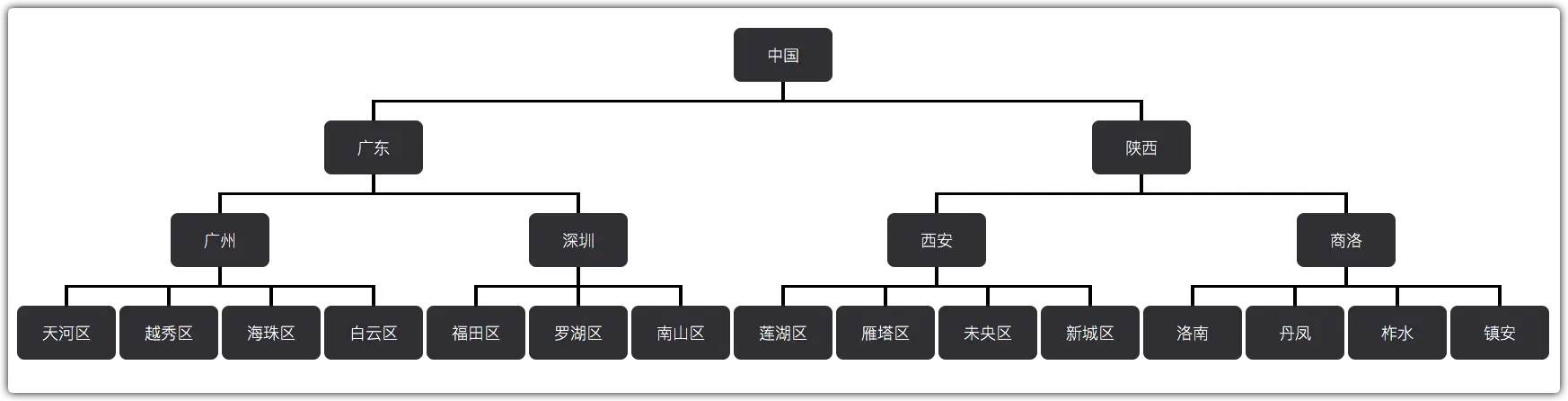 如下图所示,是一个描述了国、省、市、区的对应关系的无向图,我们的问题是:从图中找到天河区在第几层。