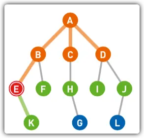 - 此时,我们的顶点到达了E,从A到E它的搜索顺序为: