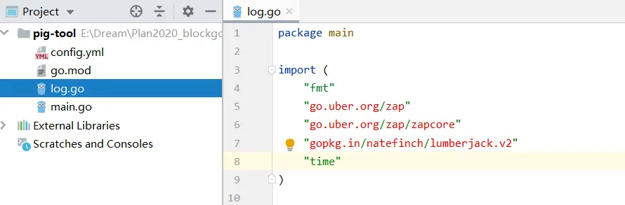新建一个golang工程名称为:pig-tool,创建一个main.go,代码如下: