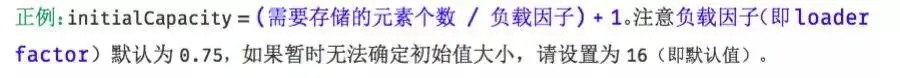 从上面的代码示例中,我们还发现,同样是设置初始化容量,设置的数值不同也会影响性能,那么当我们已知HashMap中即将存放的KV个数的时候,容量设置成多少为好呢?