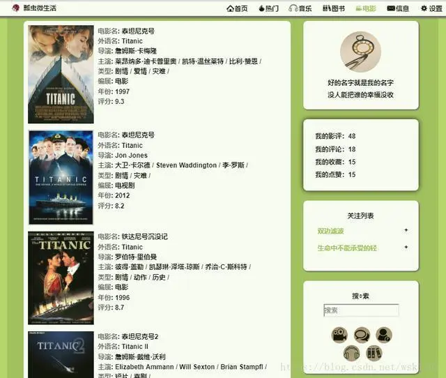 这是一个集电影,音乐和书籍于一体的Java web应用