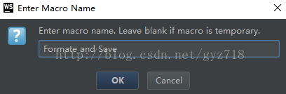 按下Ctrl+s(保存)然后按下Ctrl+Alt+L(格式化),然后按下end(跳转行尾)然后点击右下角录制按钮结束录制,输入你想要保存的名字。