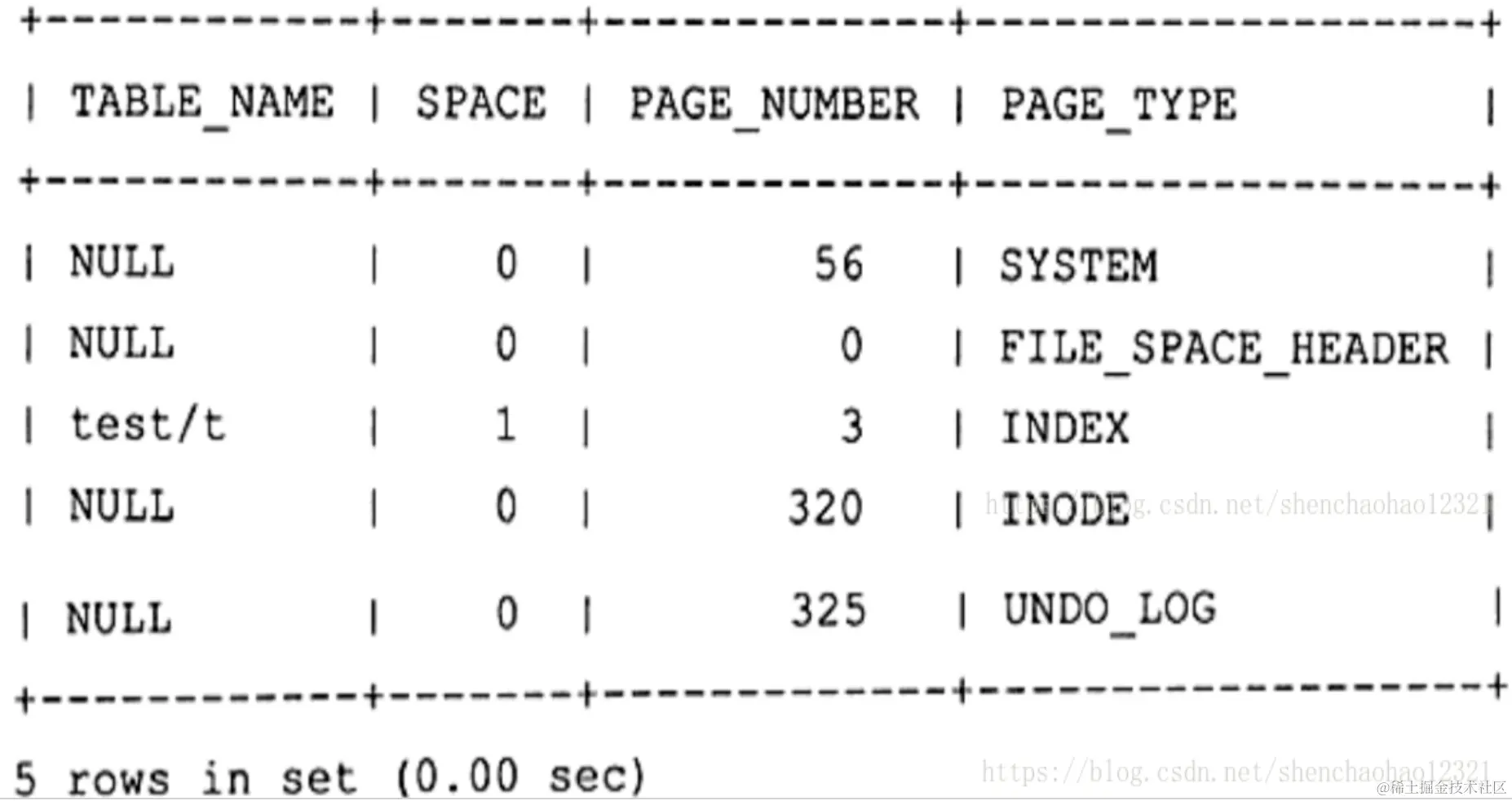 可以看到当前共有 5个脏页及它们对应的表和页的类型。 TABLE_NAME 为 NULL表示该页属于系统表空间。