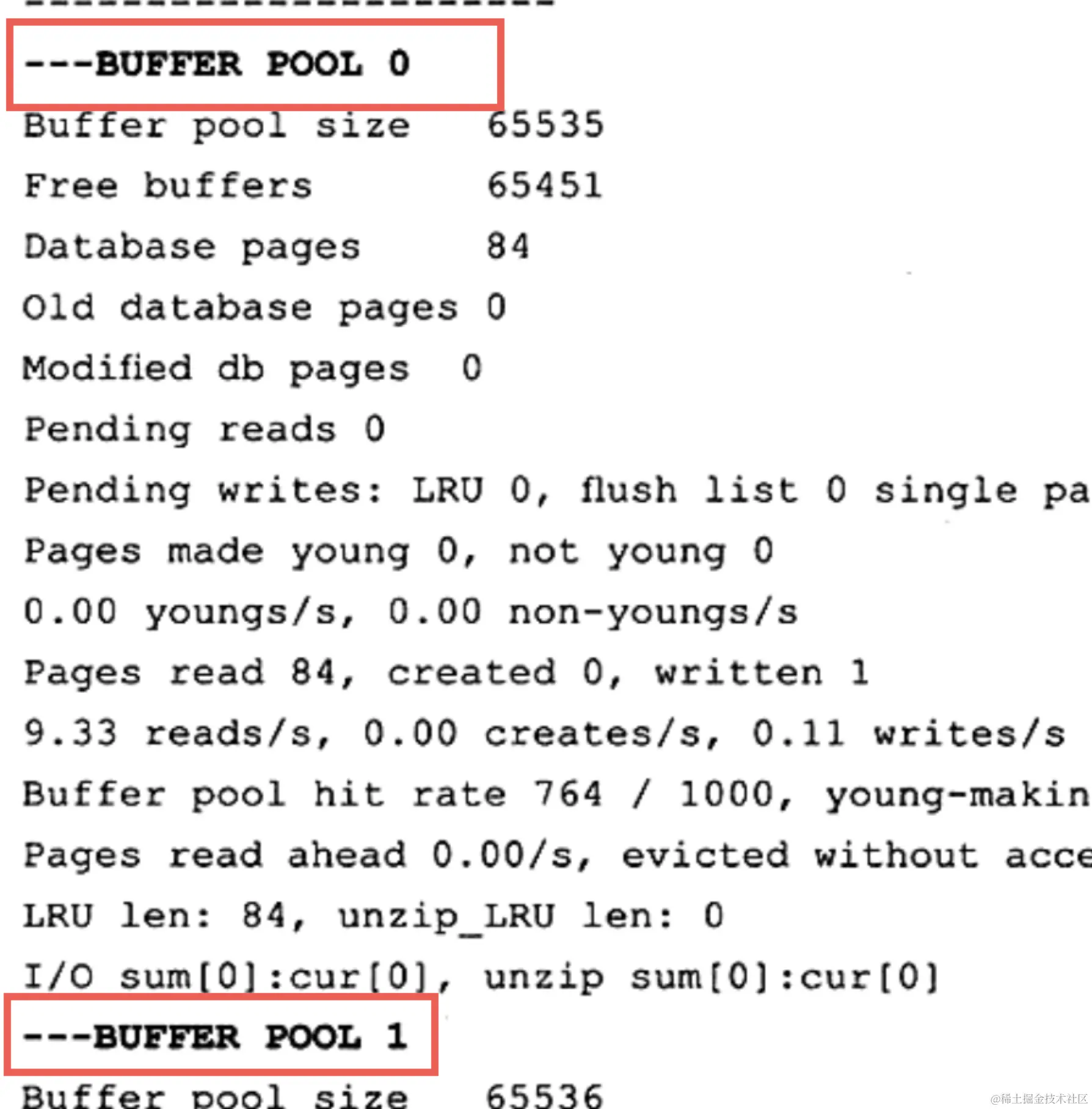 在配置文件中将innodb_buffer_pool_instances设置为大于 1 的值就可以得到多个缓冲池实例。再通过命令 SHOW ENGINE INNODB STATUS 可以观察到如下的内容: